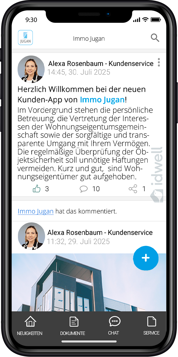Zusätzlich haben Sie jederzeit wichtige Dokumente zu Ihrer Immobilie griffbereit. Wenn Sie unsere Kunden-App am Handy installiert haben, erhalten Sie ebenso eine Push-Benachrichtigung über Neuigkeiten am digitalen Schwarzen Brett. Dadurch bleiben Sie mit Sicherheit immer auf dem neuesten Stand zu Themen rund um Ihre Immobilie(n).